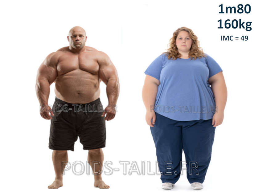 Les personnes qui mesurent 1m80 (180cm) et qui pèsent 160kg, ont un IMC (Indice de Masse Corporelle) de 49,4.