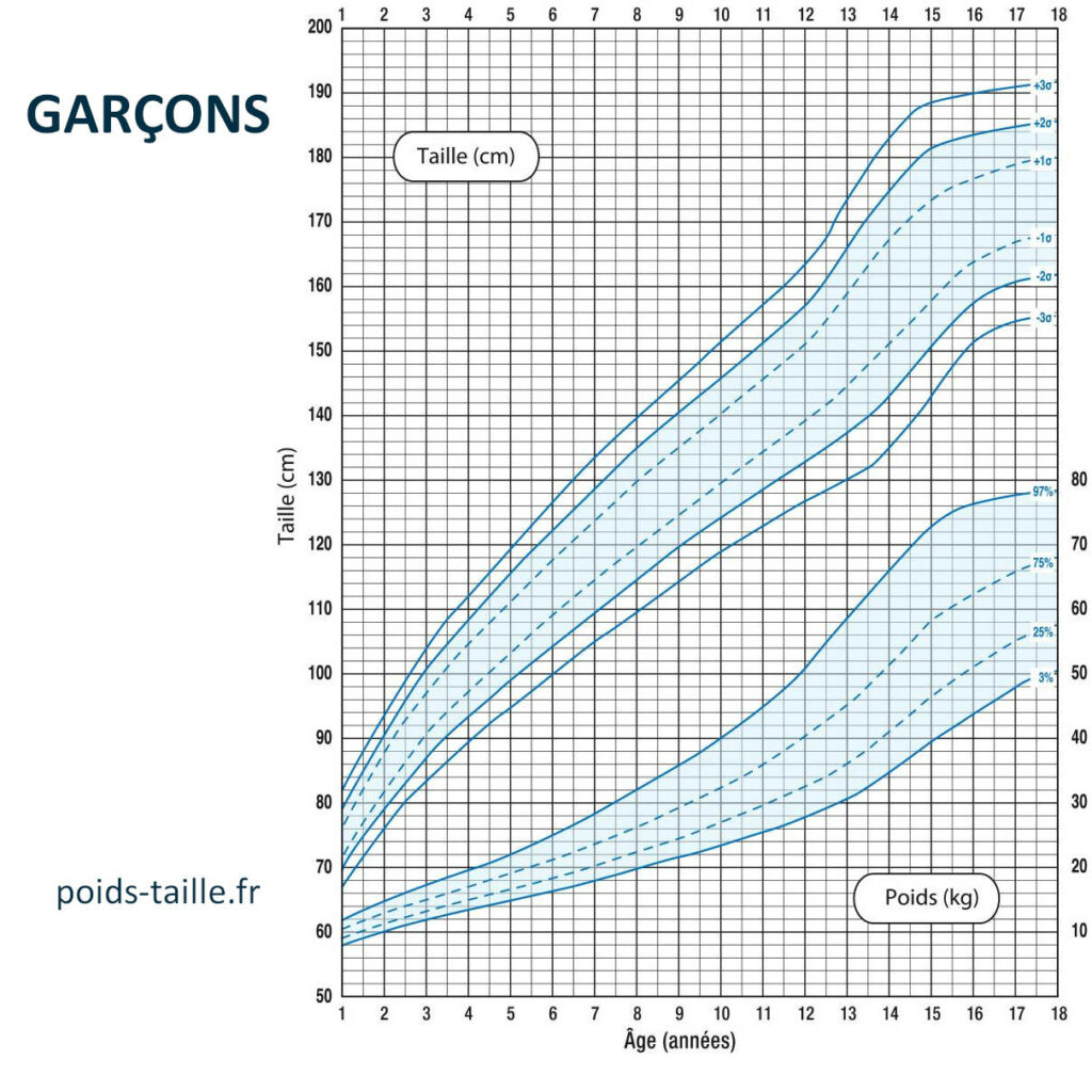Les courbes de croissance poids/taille pour les enfants et ados